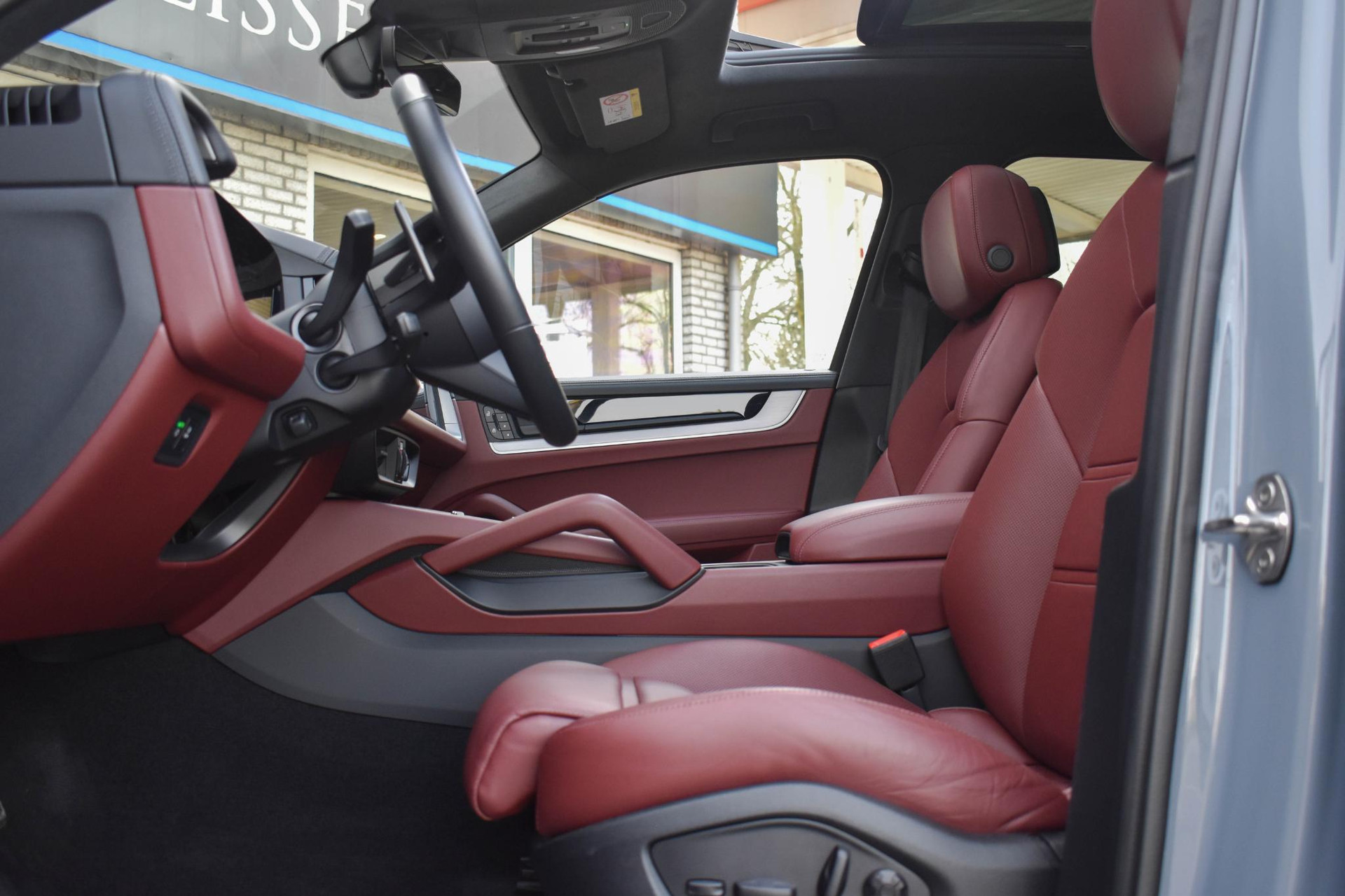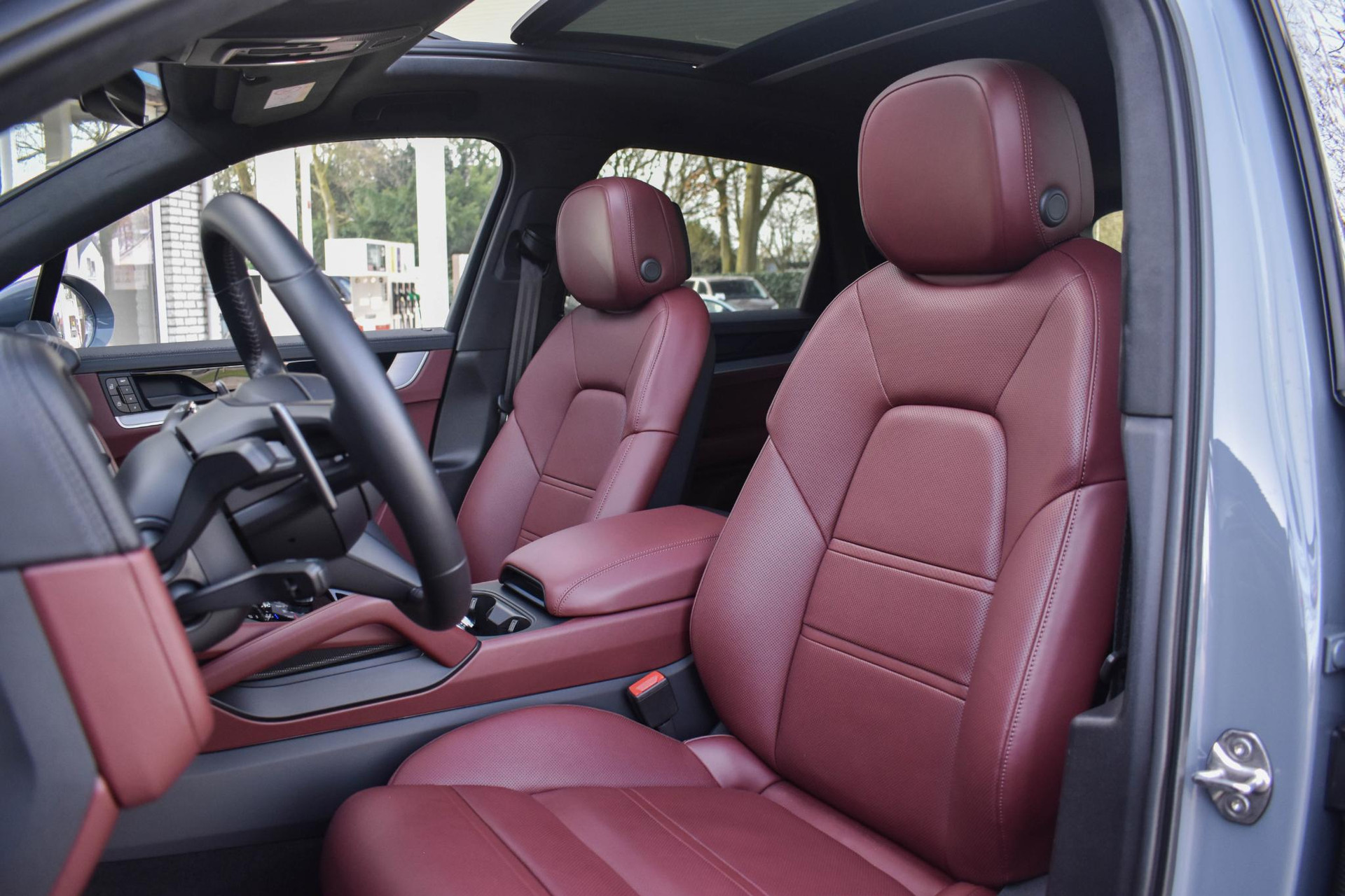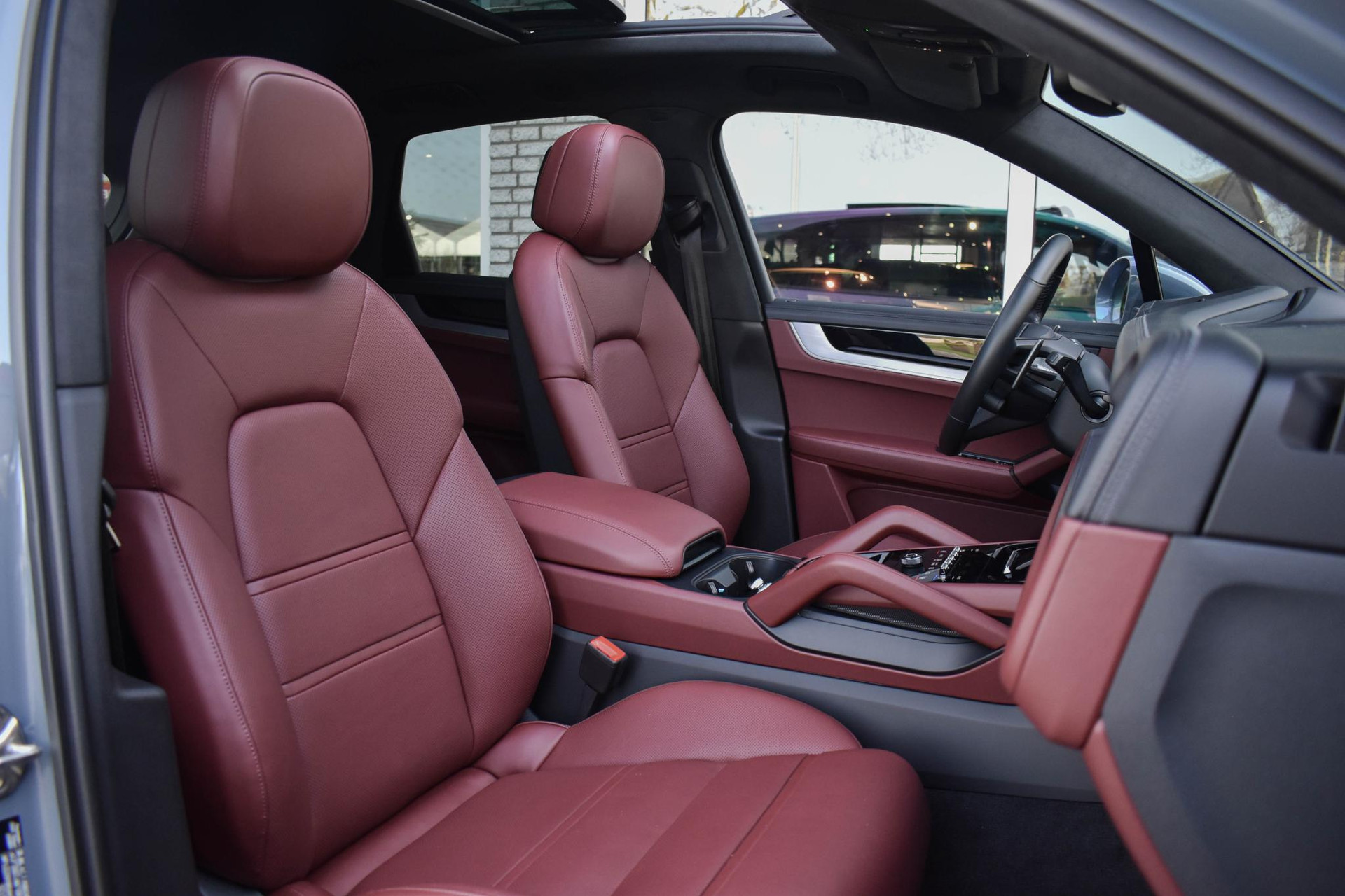 Club Lederen Interieur in Barrique Rood met Cross Stiching