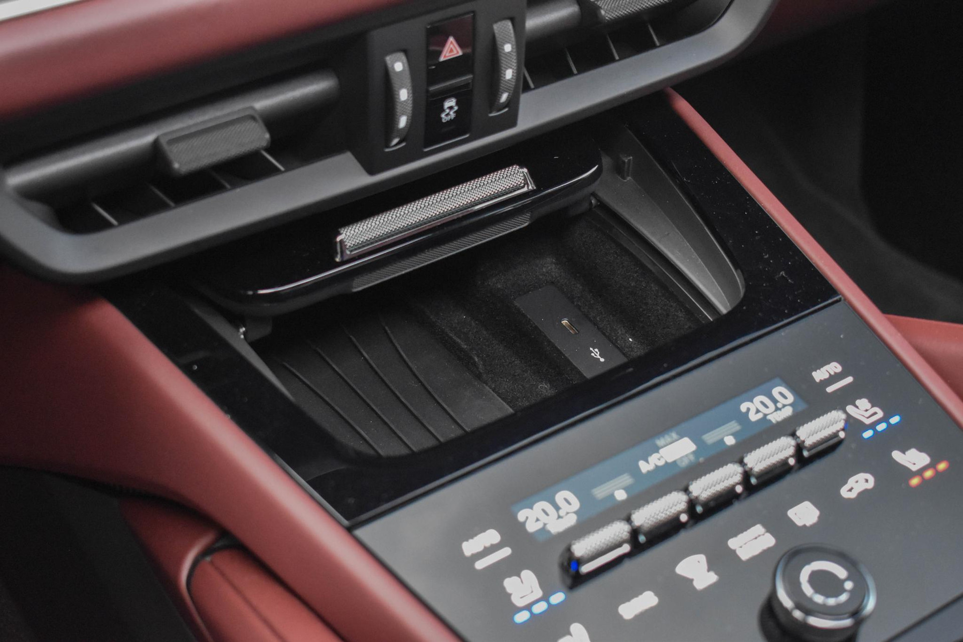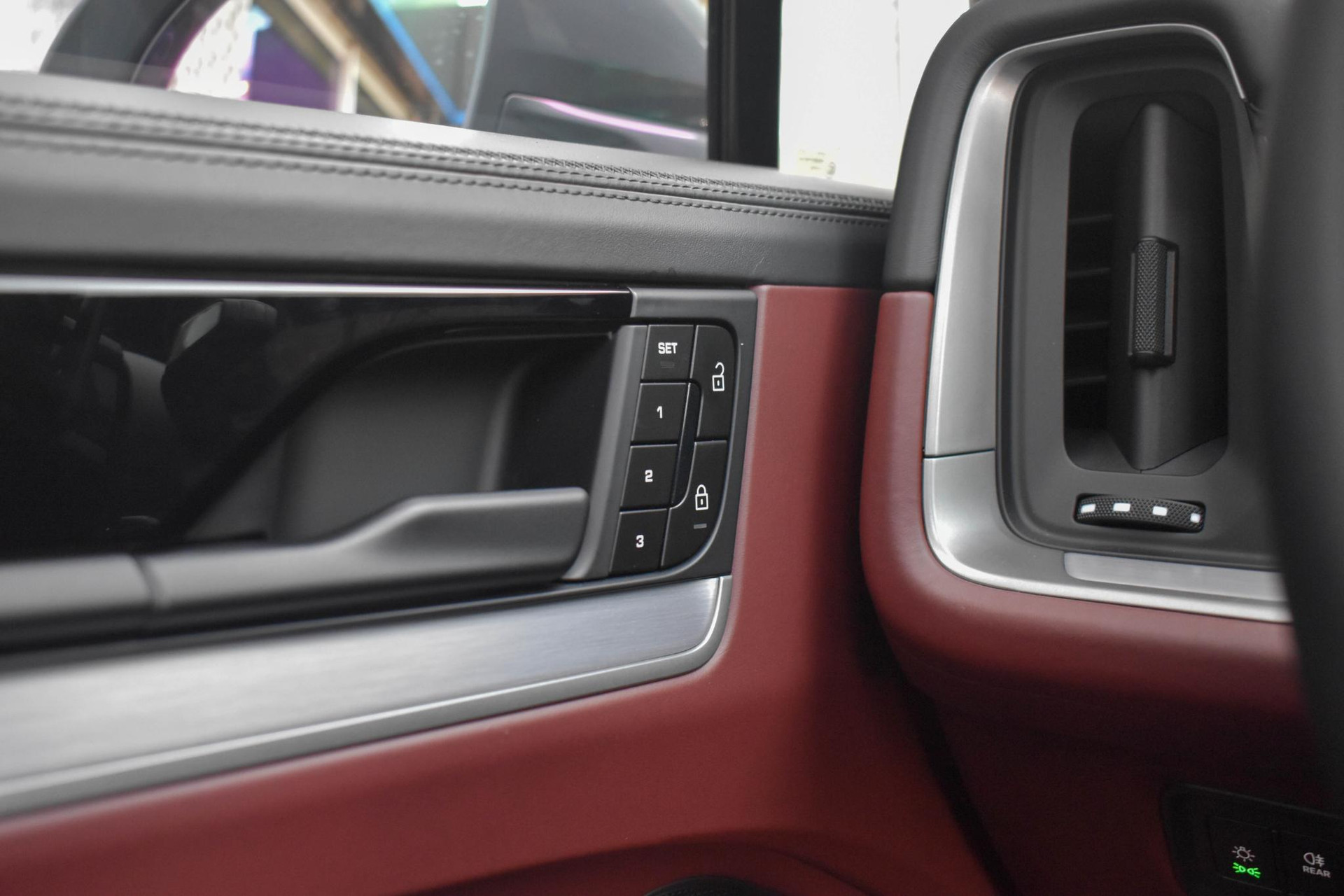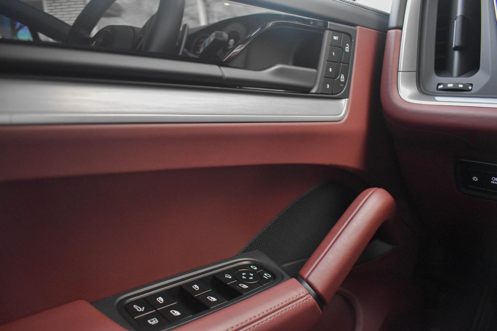 Club Lederen Interieur in Barrique Rood met Cross Stiching